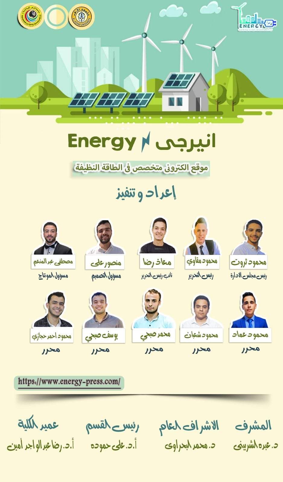 أطلق مجموعة من طلاب كلية الإعلام جامعة الأزهر الشريف موقع “إنيرجي-Energy “، كاموقع متخصص في تناول أنواع الطاقات النظيفة وأثارها علي المجتمع وقضايا التحول للطاقة النظيفة ، وذلك ضمن مشروعات تخرج قسم الصحافة والنشر لعام 2022/2023.