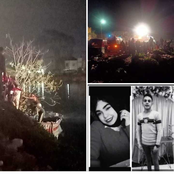 مصرع 4 أشخاص بحادث إنقلاب سيارة فى ترعة المحمودية بدمنهور .