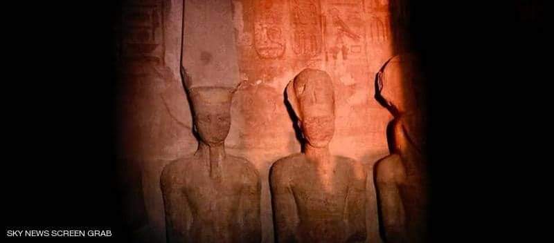 وتتعامد أشعة الشمس على قدس الأقداس بمعابد أبو سمبل، بعد اختراقها الممر الأمامي لمدخل معبد رمسيس الثاني بطول 200 مترًا.