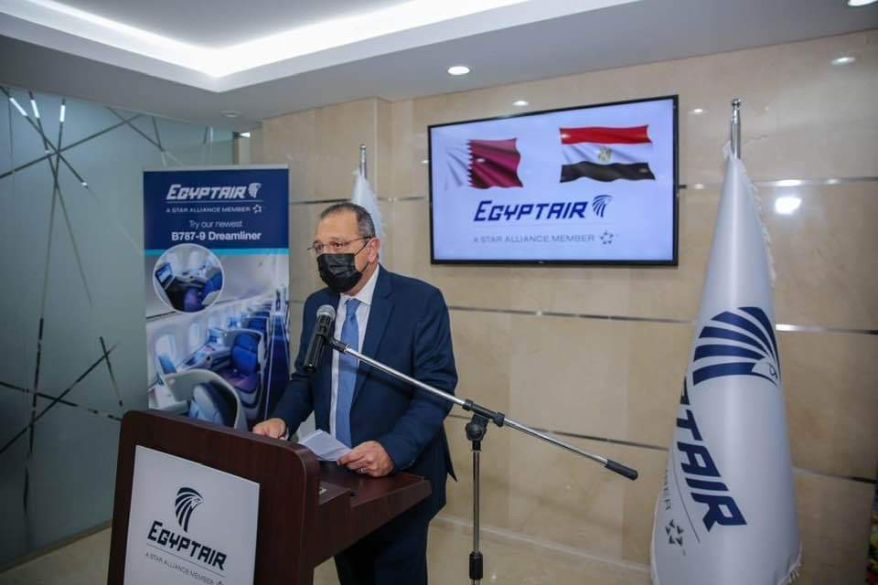 افتتح الطيار عمرو أبوالعينين رئيس مجلس إدارة الشركة القابضة لمصرللطيران اليوم ٩/١١/٢٠٢١مكتب مصرللطيران الجديد بالدوحة