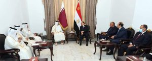 جاء ذلك خلال لقاء الرئيس عبد الفتاح السيسي في العاصمة العراقية بغداد مع الامير تميم بن حمد آل ثاني أمير دولة قطر.