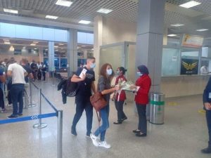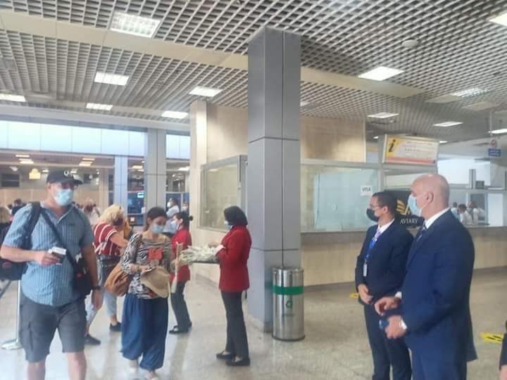 حيث استقبلت إدارة مطار شرم الشيخ الطائرة بتقليد رش المياه المتبع فى أجواء الترحيب والاستقبال لأول رحله طيران تهبط فى المطار. وقام فريق العلاقات العامة بالمطار بإستقبال السائحين في صالة الوصول الدولي بالهدايا والورود والشيكولاته ترحيبا بوصولهم إلى مصر .