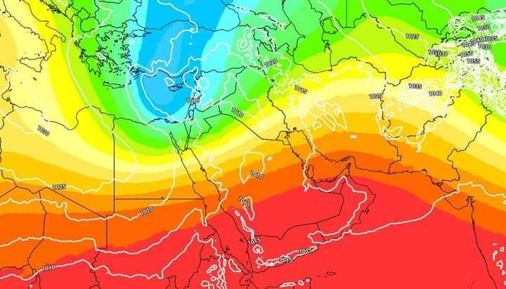 كما أنه من المتوقع تكون م تبريد علوي في الطبقة 500 ب -30 ورطوبة قوية في الطبقات 700 و 850 على شمال مصر.