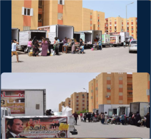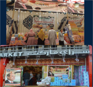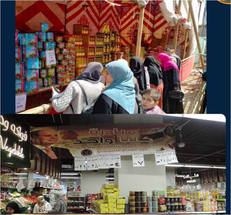 بالإضافة إلى عدد من السرادقات بالميادين والشوارع الرئيسية وقوافل السيارات بالمناطق الأكثر إحتياجاً التى لا تتوافر بها أفرع للسلاسل التجارية.