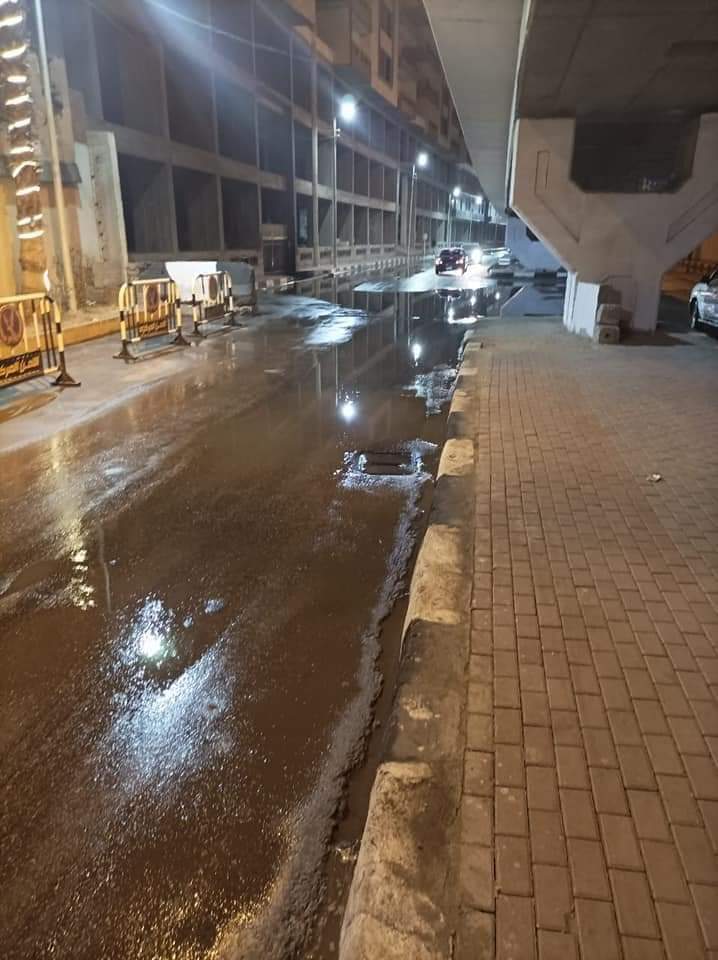 حيث استمرت الأعمال حتى الساعة الرابعة فجراً وتم فتح الطريق وتم شفط المياه من خلال 10سيارات تابعة لشركه مياه الشرب وبلاعات صرف المطر التي تعمل بحاله جيدة.