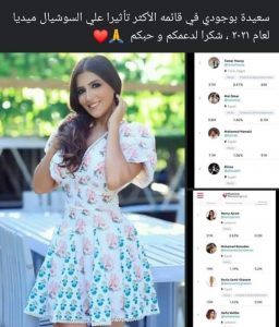 وعبرت مي عن سعادتها بنشرها القائمة، وكتبت: “سعيدة بوجودي في قائمه الأكثر تأثيرا علي السوشيال ميديا لعام ٢٠٢١ شكرا لدعمكم و حبكم”.