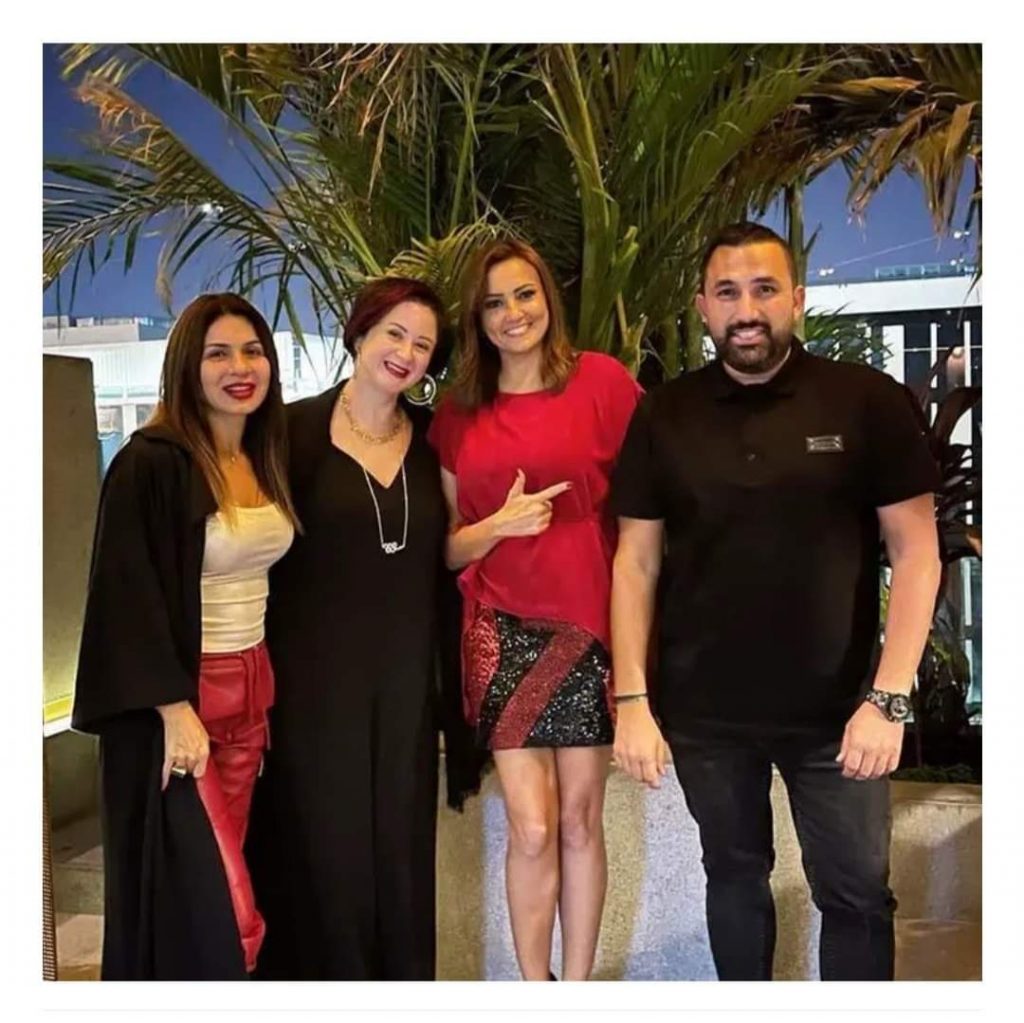 وظهرت مي، رفقة رجل الأعمال هاني سعد زوج الفنانة التونسية درة، والفنانة بشرى، والفنانة نجلاء بدر.