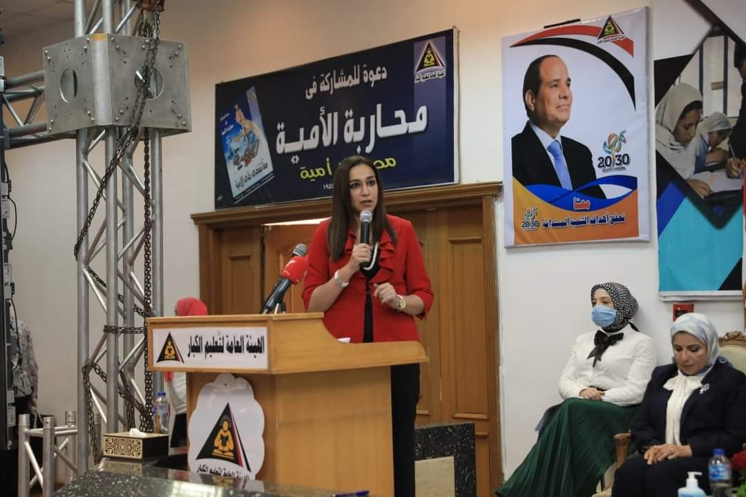 وخلال كلمتها بالإحتفالية نقلت نائب المحافظ لجميع الحضور تهنئة اللواء هشام آمنة – محافظ البحيرة بمناسبة الإحتفال باليوم العالمي لمحو الأمية وفوز مصر بجائزة اليونسكو لمحو الأمية لعام ٢٠٢١ من خلال تجربة جامعة عين شمس بشركة هيئة تعليم الكبار حيث شاركت المحافظة فى عدد من القوافل التنويرية الموسعة التى تم تنظيمها بقرية البريجات بمركز كوم حمادة تمهيداً لإعلان القرية خالية من الأمية تفعيلاً للبروتوكول الموقع بين هيئة تعليم الكبار وجامعة عين شمس وتم خلالها عقد إمتحانات فورية لـ ١٥٠ دارس من ابناء القرية .