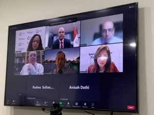 والتي نظمتها الغرفة التجارية المصرية البريطانية عبر تقنية الفيديو كونفرانس برئاسة السيد/جاريث بايلي – سفير بريطانيا بالقاهرة، وبحضور السيد/ ألفريد أسيل، العضو المنتدب لشركة مينا رايل للاستشارات في مجال النقل، والسيد/ جوردون تورليمدير – مسئول المشروعات الكبرى بموت ماكدونالد، وعدد من الشركات الاستثمارية.