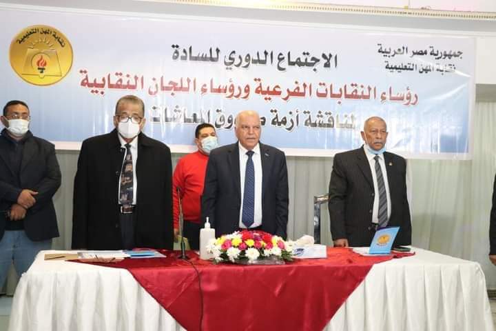 أعلنت هيئة مكتب نقابة المهن التعليمية، برئاسة خلف الزناتى نقيب المعلمين ورئيس اتحاد المعلمين العرب، عقب اجتماعها برؤساء النقابات الفرعية واللجان النقابية للمعلمين على مستوى الجمهورية ، لمناقشة ضعف موارد معاشات المعلمين