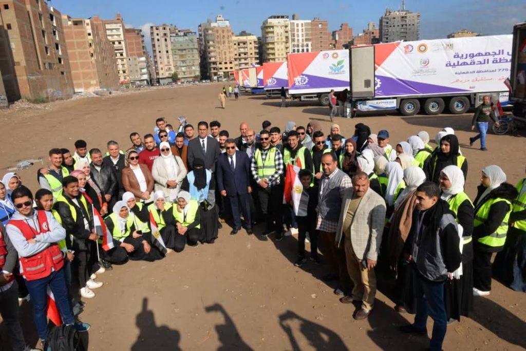 مشيدا بالدور الذي قامت به الجهات المشاركة في إطلاق قافلة المساعدات وتضم مديريه التضامن الاجتماعي بالدقهلية
