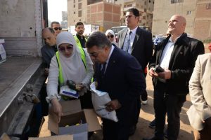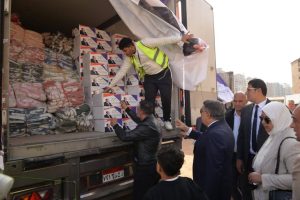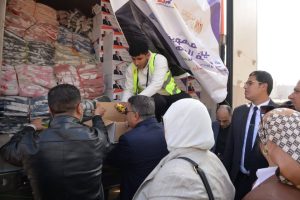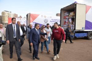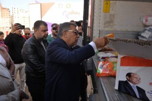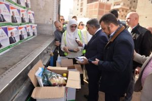 وتفقد محافظ الدقهلية محتويات السيارات السبع المحملة بالمساعدات، ومحتويات الكراتين