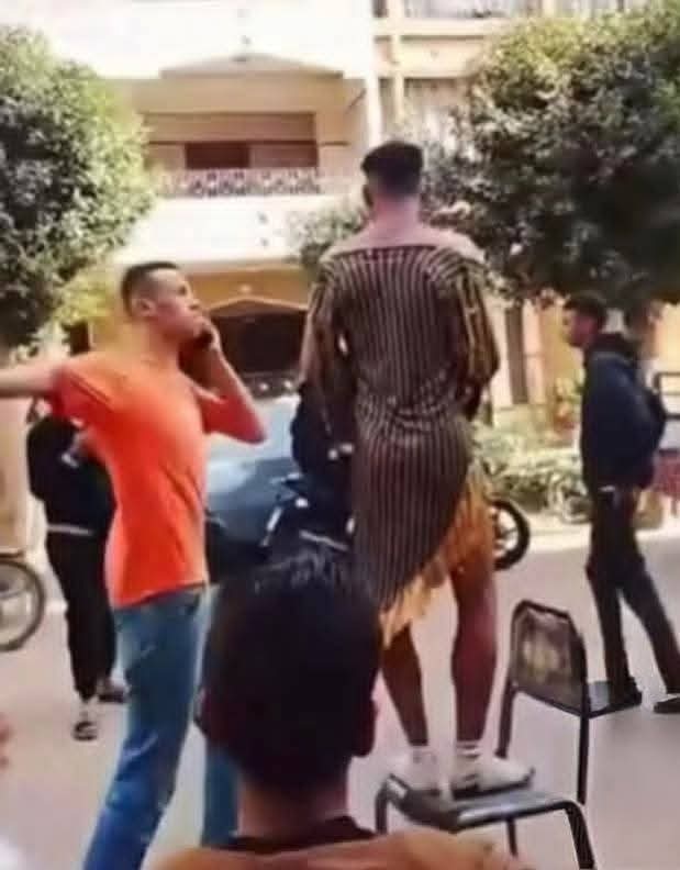 وبحسب شهادات أهالي القرية، فقد أقدم المتعدون على إجباره على ارتداء ملابس غير لائقة، وسيروه في شوارع القرية أمام العامة، بزعم قيامه بخطف فتاة، بينما كانت الحقيقة أن الشاب تقدم للفتاة ولم يتم قبول طلبه من عائلتها، وأن الفتاة نفسها كانت معه برغبتها ورفضت العودة لبيت أهلها.