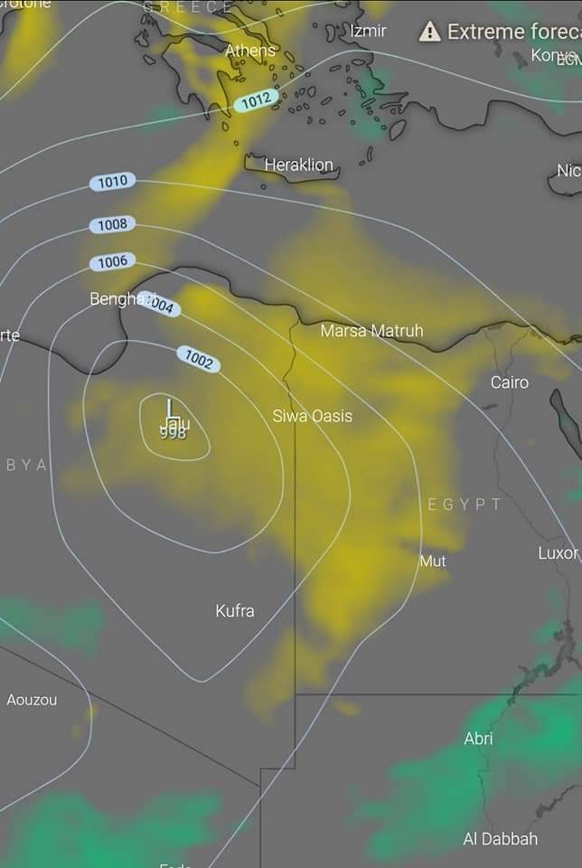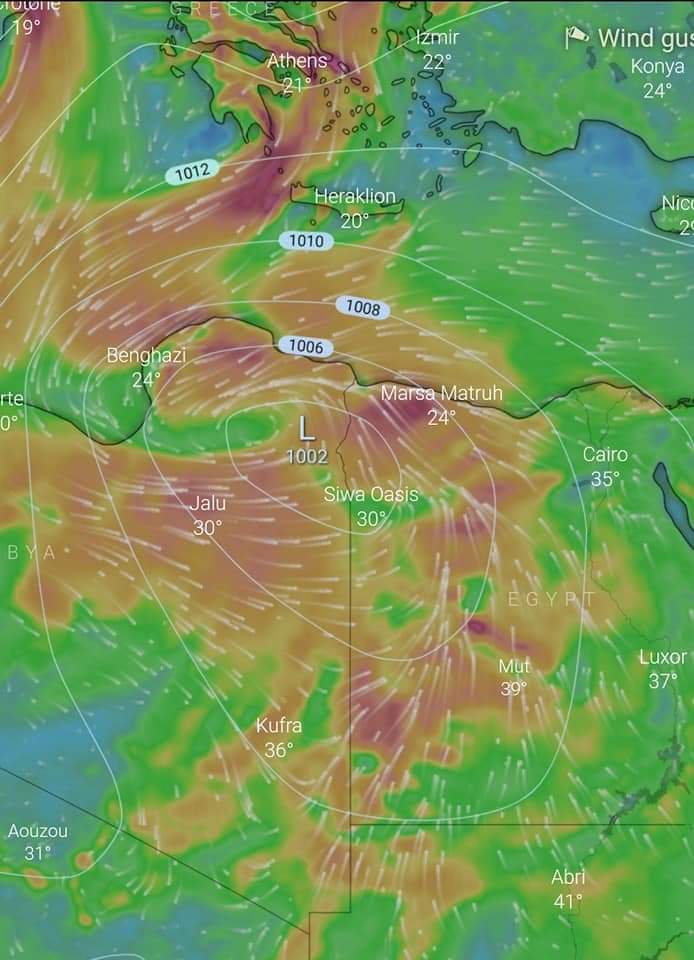 والمنخفض في حركته سريع حيث يمر يوم الجمعة ليعبر مصر مغادرا ايها الي بلاد الشام وعلية تنخفض درجات الحرارة سريعا لتعود حول معدلاتها الطبيعية يوم السبت القادم 30 ابريل..