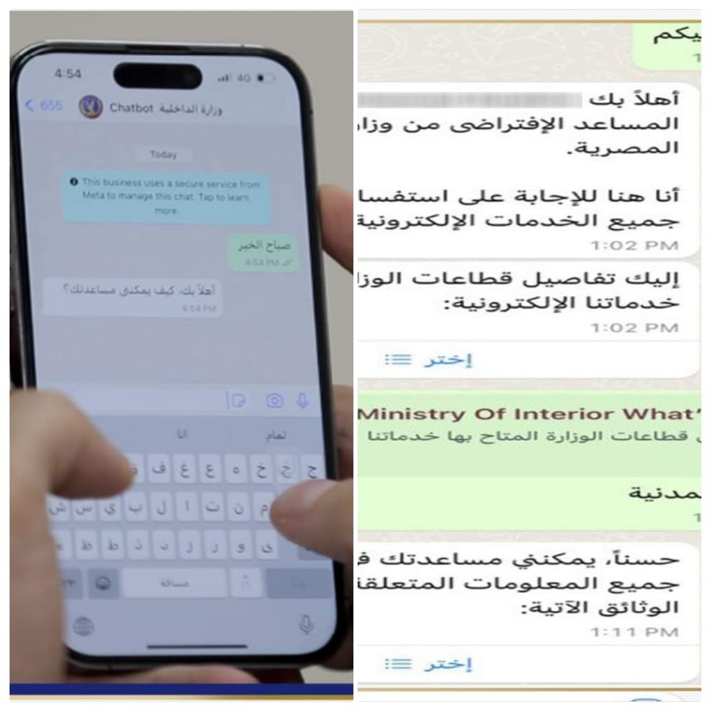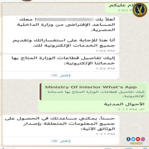 وزارة الداخلية تطلق خدمة جديدة عبر تطبيق واتس اب للرد الآلى على الاستفسارات الخاصة بالخدمات الإلكترونية