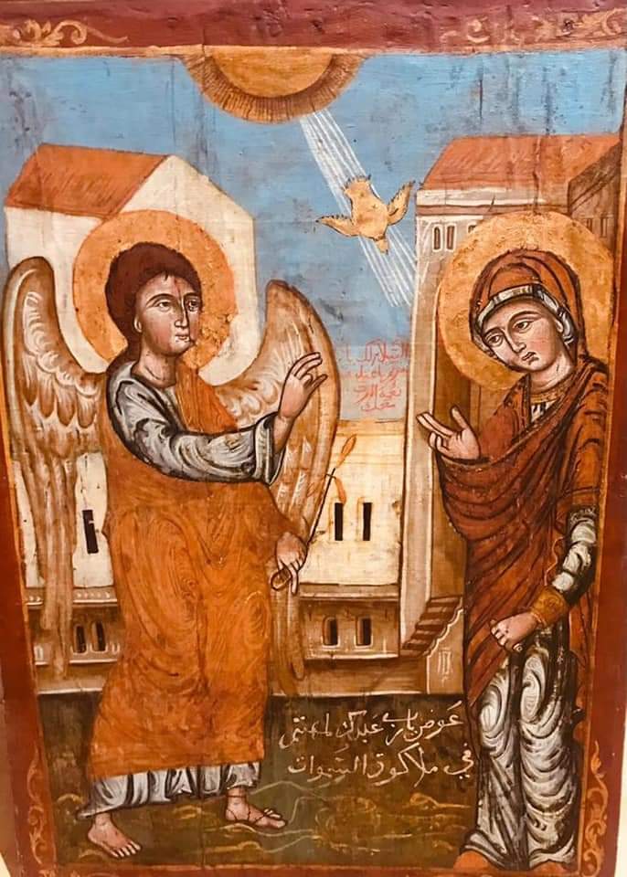 كما يضم المعرض أيقونة العائلة المقدسة والقديس يوحنا المعمدان، وأيقونة ميلاد السيد المسيح، وأيقونة البشارة والتي يظهر فيها الملاك أمام السيدة العذراء يبشرها بحملها ممسكًا بيده اليسرى فرعًا من الزهور، ويوجد طائر في الوسط.