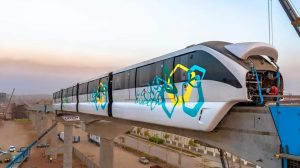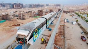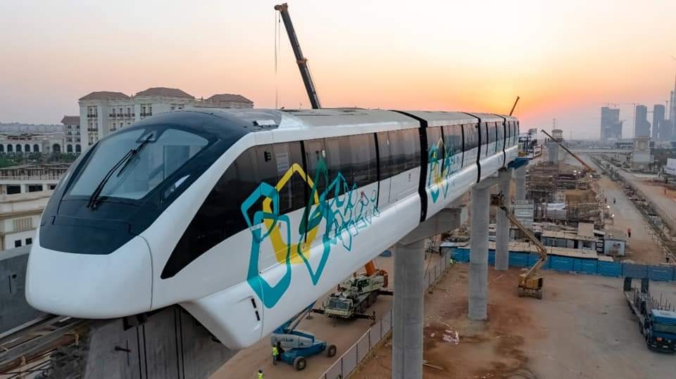 وزارة النقل تثيبت أول قطار مونوريل على مسار مونوريل شرق النيل (العاصمة الإدارية)