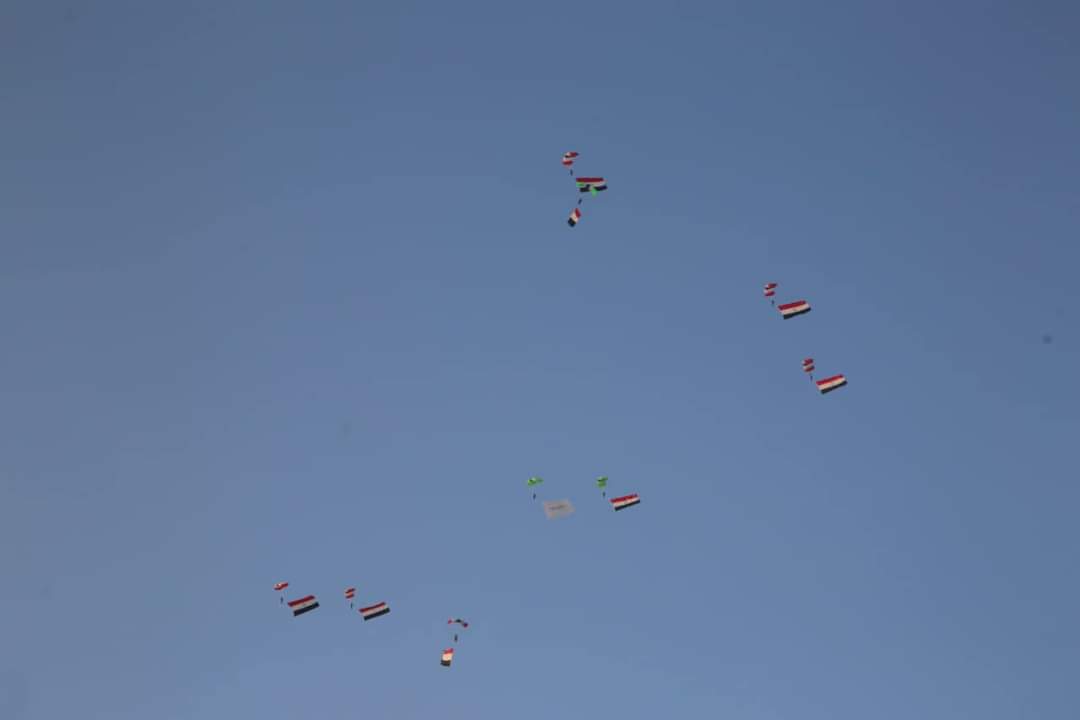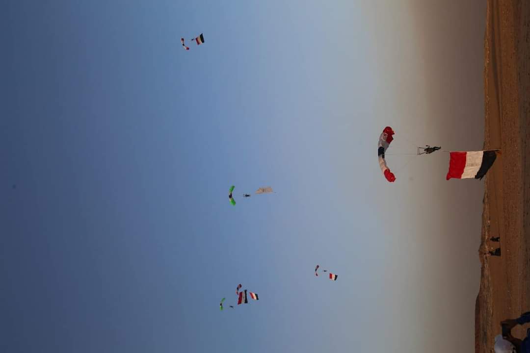 وزراء الرياضة والسياحة والطيران يشهدون عرض قفز بالمظلات بسفح الأهرامات