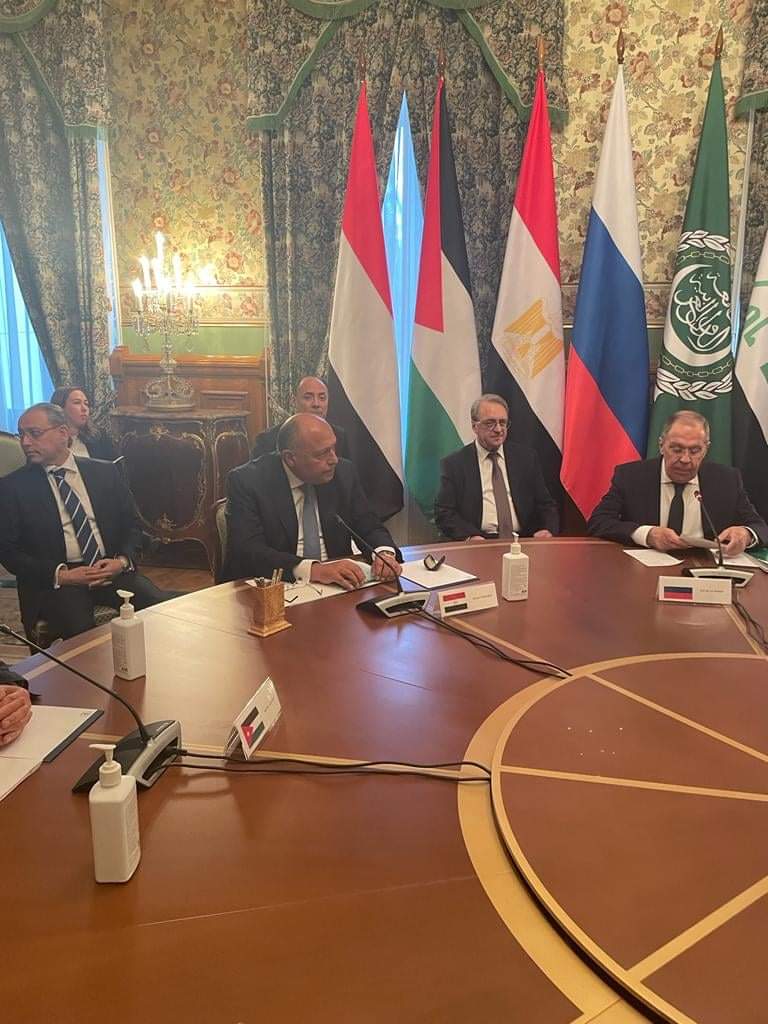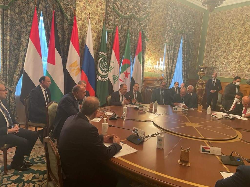عقد وزراء خارجية مجموعة الاتصال العربية وأمين عام جامعة الدول العربية أحمد أبو الغيط، اليوم الإثنين، جلسة مشاورات في موسكو، مع وزير الخارجية الروسي سيرجي لافروف، بشأن الأزمة في أوكرانيا.