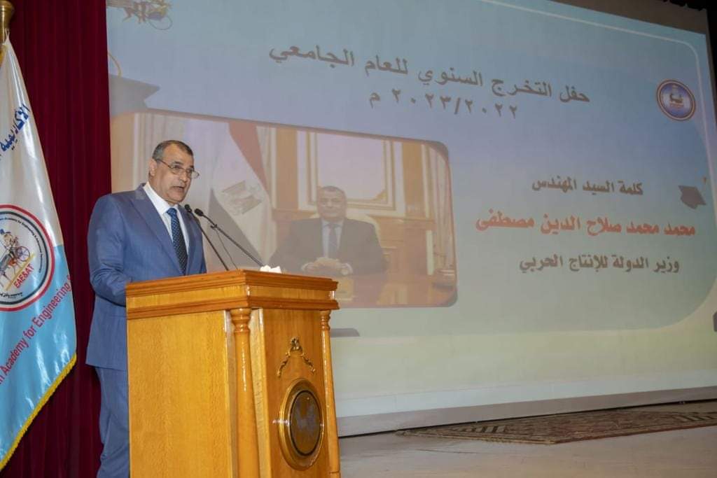 شهد وزير الدولة للإنتاج الحربي المهندس محمد صلاح الدين مصطفى، ووزير الشباب والرياضة الدكتور أشرف صبحي، مراسم الاحتفال السنوي بتخريج الدفعة الرابعة لطلبة الأكاديمية المصرية للهندسة والتكنولوجيا المتقدمة التابعة للوزارة عن العام الدراسي (2022/2023)، بالمسرح الملحق بقطاع التدريب التابع لوزارة الإنتاج الحربي بمدينة السلام، وبحضور عدد من قيادات وزارة الإنتاج الحربي والهيئة القومية للإنتاج الحربي، إذ تخرج عدد (167) مهندسا ومهندسة منهم عدد (84) تخصص ميكانيكا وعدد (64) تخصص كهرباء وعدد (19) تخصص كيمياء.