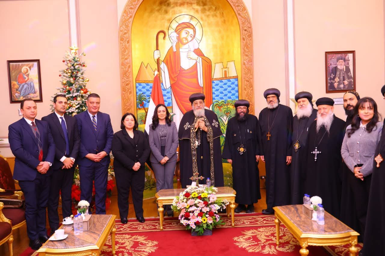 وزارت وزيرة التضامن الاجتماعي المقر البابوي بالكاتدرائية المرقسية بالعباسية، على رأس وفد رفيع المستوى ضم المهندسة مرجريت صاروفيم نائبة وزيرة التضامن الاجتماعي، والأستاذ أيمن عبد الموجود الوكيل الدائم لوزارة التضامن الاجتماعي،، والأستاذ هشام محمد مدير مكتب وزيرة التضامن الاجتماعي.