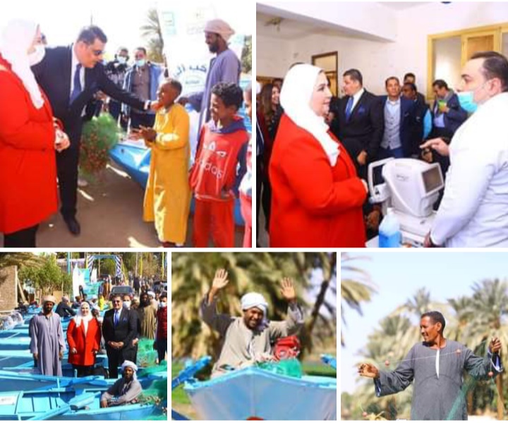 وزيرة التضامن تتفقد المنازل المطورة لأهالي النوبة وتسلم الصيادين مراكب وشباك “وتطلق مشروع “احياء الحرف التراثية “