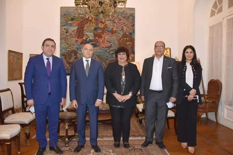 استقبلت الفنانة الدكتورة إيناس عبد الدايم وزيرة الثقافة، كريموف آنار جابيل أوغلو وزير الثقافة أذربيجان وتورال رضاييف سفيرها بمصر والوفد المرافق لهما وذلك لبحث سبل دعم وتعزيز التعاون المشترك فى شتى المجالات الفنية والثقافية .