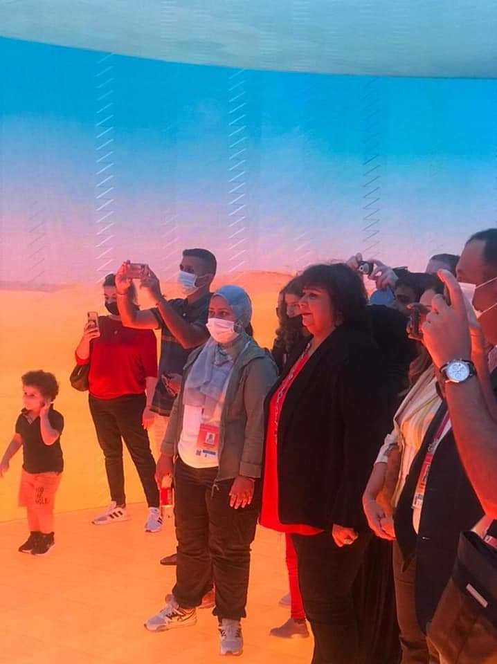 وأضافت إن الجناح المصري في إكسبو 2020 دبي يشهد إقبالا جماهيريا كبيرا من الزوار من مختلف دول العالم، واضافت ان ذلك يعكس استراتيجيات الدولة المصرية في خلق مناخ جاذب للاستثمار في جميع المجالات واشارت الي الجمهورية الجديدة وما وصلت اليه مصر في محاور التنمية المختلفة حتي ان الجناح المصري أصبح محط انظار العالم وهو ما يعكس تفرد الشخصية المصرية في التصميم والابتكار من خلال المحتوى المقدم والذي يؤكد علي حوار الحضارات ولقاء الثقافات .