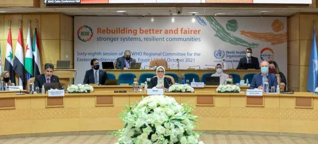 جاء ذلك خلال افتتاح أعمال الدورة الـ68 للجنة الإقليمية لمنظمة الصحة العالمية لإقليم شرق المتوسط، وذلك اليوم الإثنين، بمقر منظمة الصحة العالمية لإقليم شرق المتوسط، بحضور الدكتور محمد عوض تاج الدين مستشار رئيس الجمهورية للشئون الصحية والوقائية، والدكتورة مها الرباط المبعوث الخاص لمدير عام منظمة الصحة العالمية لشئون الكورونا، والدكتور أحمد المنظري المدير الإقليمي لمنظمة الصحة العالمية لإقليم شرق المتوسط،، والدكتورة نعيمة القصير مدير مكتب منظمة الصحة العالمية بمصر، والدكتور محمد حساني مساعد وزيرة الصحة والسكان لمبادرات الصحة العامة.