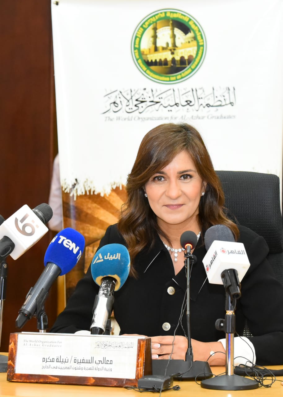 شاركت السفيرة نبيلة مكرم عبد الشهيد وزيرة الدولة للهجرة وشئون المصريين بالخارج في ندوة بعنوان مكافحة الهجرة غير الشرعية بمفهوم جديد والتي عقدت تحت رعاية المنظمة العالمية لخريجي الأزهر وبالتعاون مع جامعة الأزهر في إطار مشروع سفراء الأزهر أونلاين