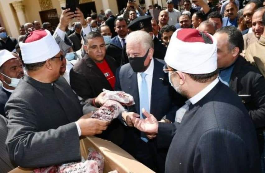 في إطار الدور المجتمعي لوزارة الأوقاف ومشاركة في احتفالات محافظة جنوب سيناء بذكرى رفع العلم المصري على مدينة طابا شهد معالي أ.د/ محمد مختار جمعة وزير الأوقاف مع سيادة اللواء/ خالد فودة محافظ جنوب سيناء اليوم الجمعة 18/ 3/ 2022م توزيع 2 طن من لحوم صكوك الإطعام بالمحافظة.
