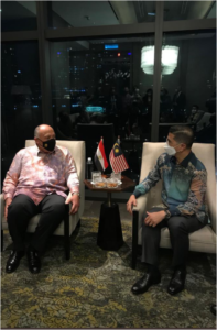 وذلك قبيل عشاء عمل يقيمه على شرفه ويشارك فيه كل من وزيريّ المالية والاقتصاد، وكبار قادة وممثلي مجتمع الأعمال الماليزي.