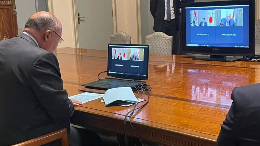 تلقى وزير الخارجية سامح شكري، اتصالا مرئياً عبر الفيديوكونفرانس من وزير الخارجية الياباني “يوشيماسا هاياشي”، وتناول الجانبان العلاقات الثنائية بين البلدين فضلاً عن آخر التطورات الإقليمية والدولية.