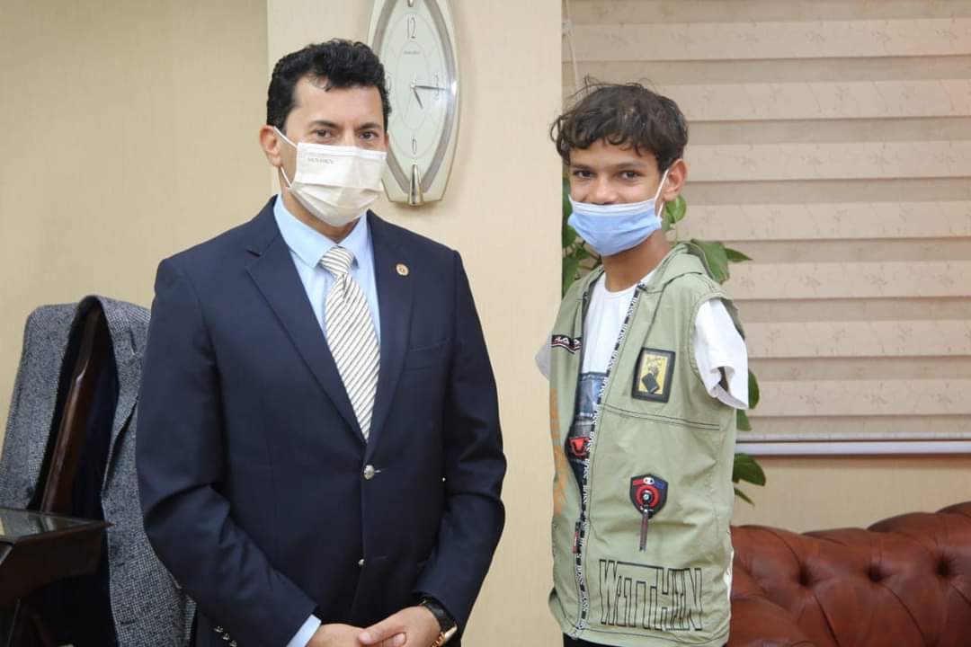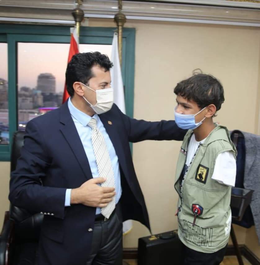 وزير الرياضة يهدى الطفل صاحب الموهبة فى كرة القدم عضوية مركز شباب بلبيس ويؤسس فريق من ذوى الهمم