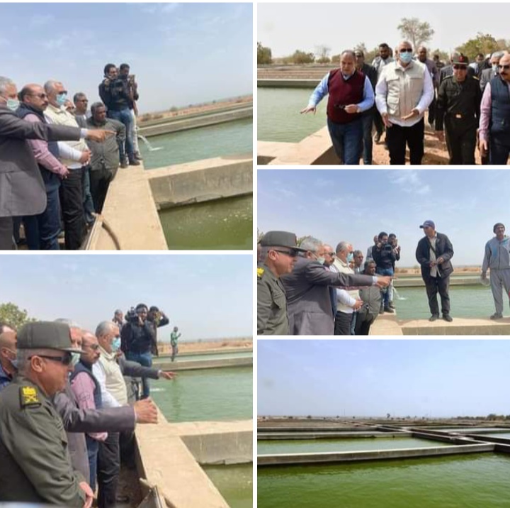 بتفقد مفرخ جرف حسين السمكي بأسوان يرافقهم الدكتور صلاح مصيلحى رئيس هيئة الثروة السمكية والدكتور محمد الشحات رئيس هيئة التعمير والتنمية الزراعية