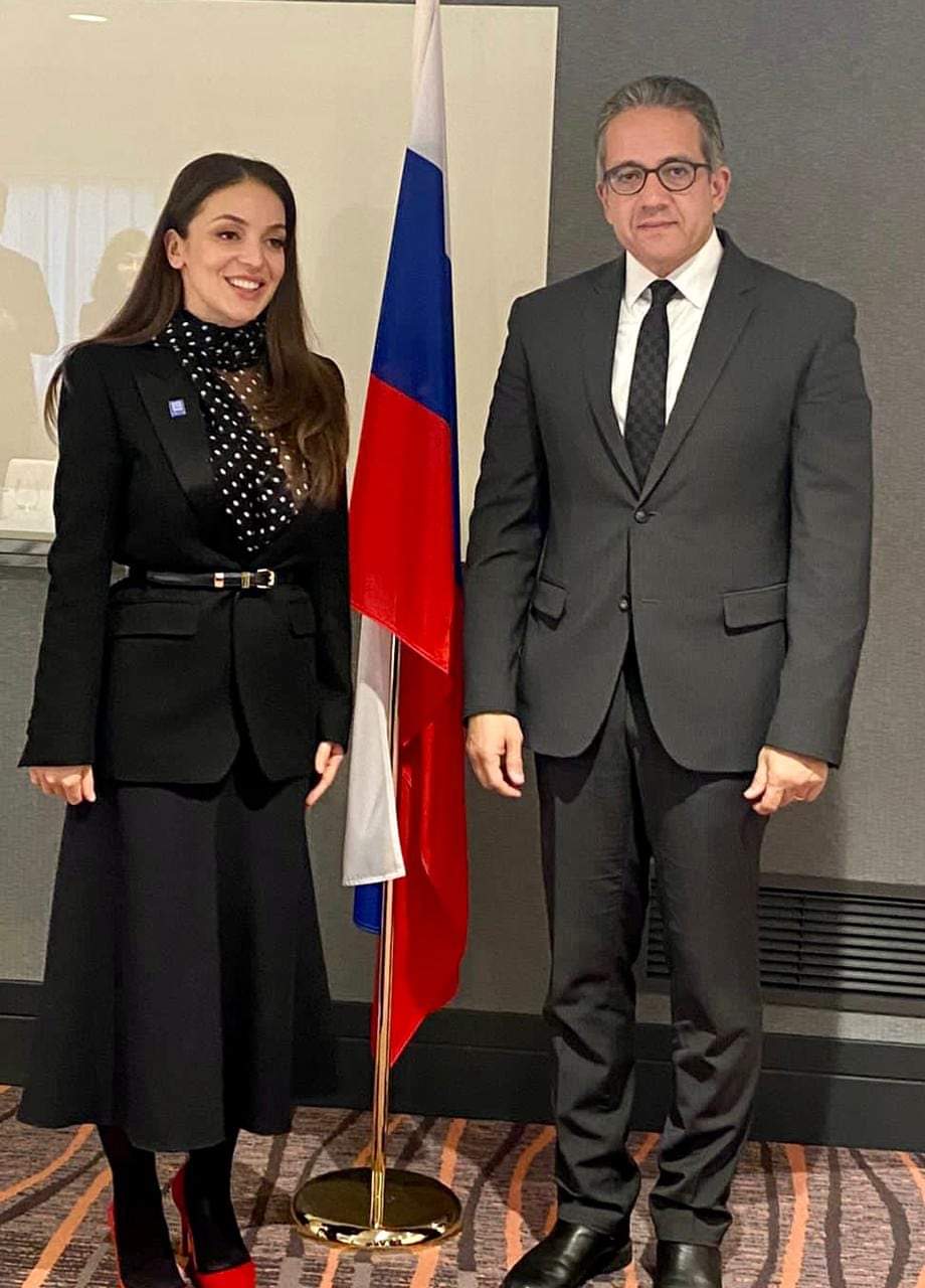على هامش زيارته الحالية للعاصمة الإسبانية مدريد للمشاركة في أعمال الدورة رقم 114 للمجلس التنفيذي لمنظمة السياحة العالمية، استهل الدكتور خالد العناني وزير السياحة والآثار، اليوم الأربعاء، لقاءاته الرسمية التي يعقدها خلال الزيارة بلقاء السيدة Zarina Doguzova رئيسة الوكالة الفيدرالية الروسية للسياحة.