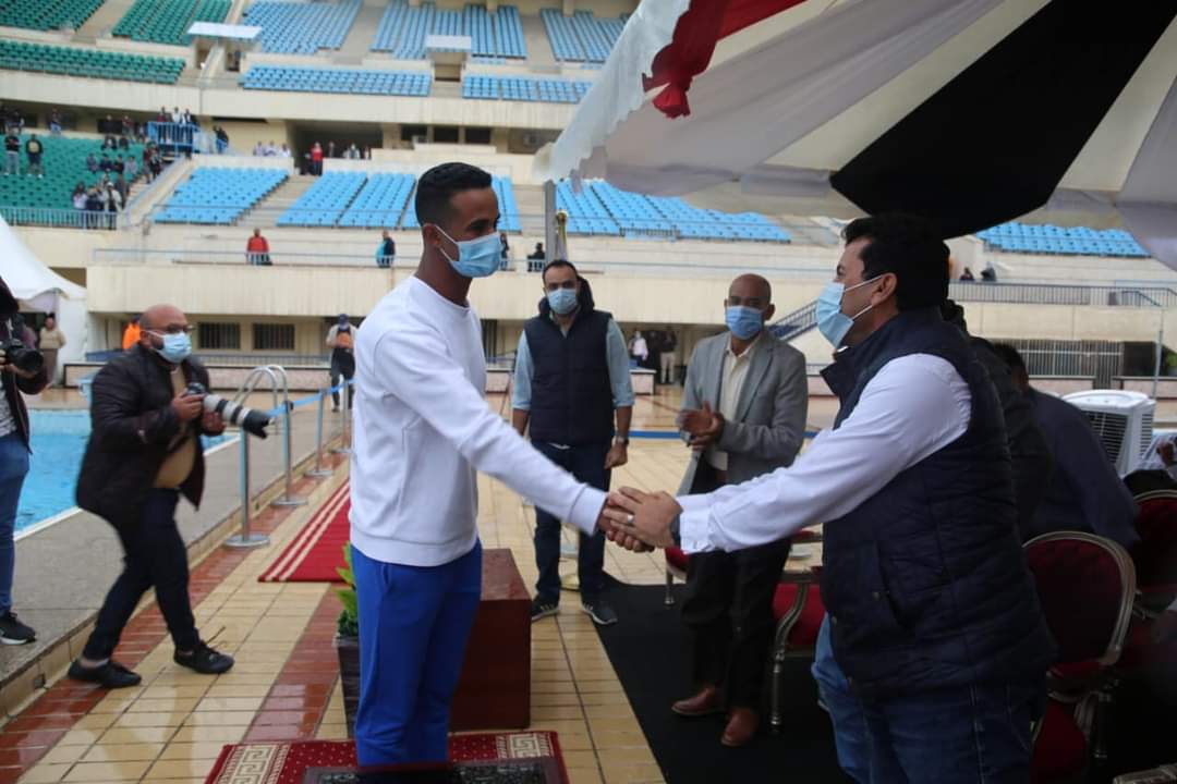 شهد الدكتور أشرف صبحي وزير الشباب والرياضة، تحقيق مصر لانجاز جديد وتحطيم رقم قياسي جديد بموسوعة جينيس لأعلي قفزة خارج الماء للسباح المصري عمر سيد شعبان لاعب المنتخب القومي للسباحة بالزعانف.