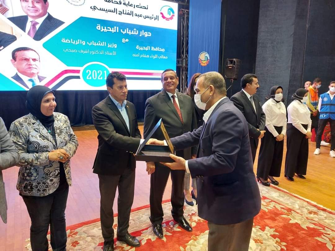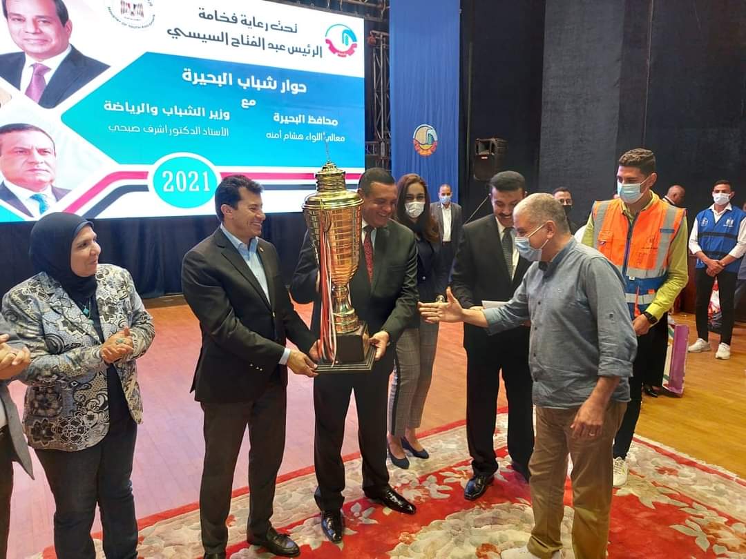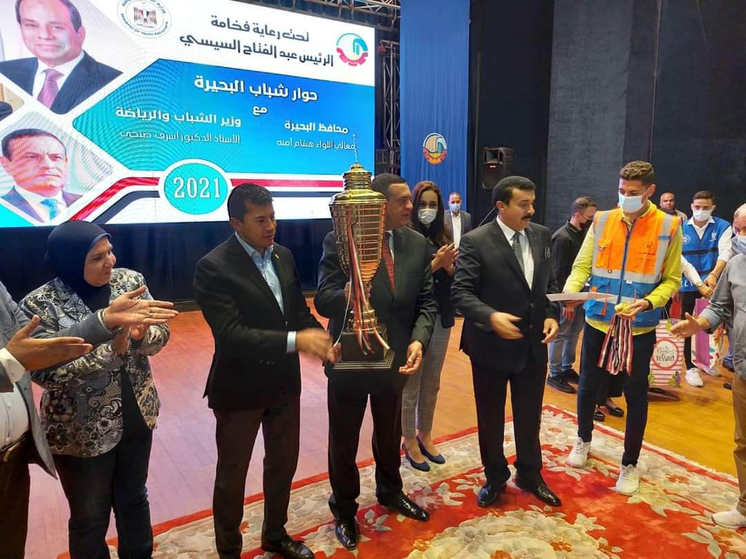 شهد اللواء هشام آمنة – محافظ البحيرة والدكتور أشرف صبحي – وزير الشباب والرياضة الحفل الختامي الذى نظمته المحافظة ومديرية الشباب والرياضة بمجمع دمنهور الثقافي وذلك فى ختام زيارة إستمرت على مدار اليوم تم خلالها إفتتاح وتفقد عدد من المشروعات الرياضية على أرض المحافظة بمراكز وادي النطرون وبدر وكوم حمادة وأبو المطامير .
