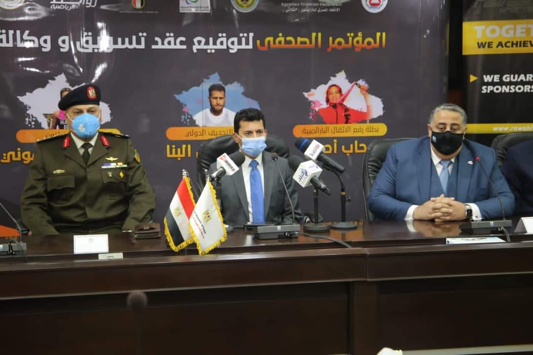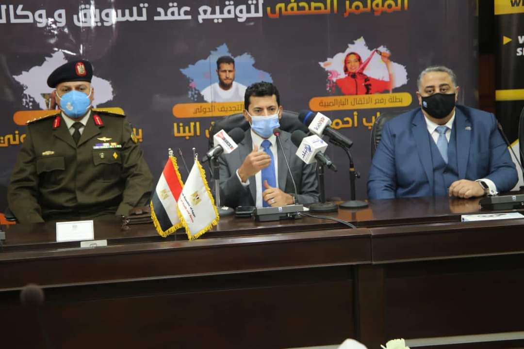 شهد الدكتور أشرف صبحي وزير الشباب والرياضة ،اليوم الثلاثاء، مراسم توقيع عقود تسويق ووكالة لثلاثة لاعبين بحضور كل من العميد صبري مصيلحي رئيس جهاز الرياضة العسكري، و اللواء أحمد ناصر رئيس الكونفدرالية الإفريقية، والدكتورة حياة خطاب رئيس اللجنة البارالمبية، والدكتور وليد الملاح رئيس مجلس إدارة شركة روابط الرياضية، وعدد من قيادات الوزارة.