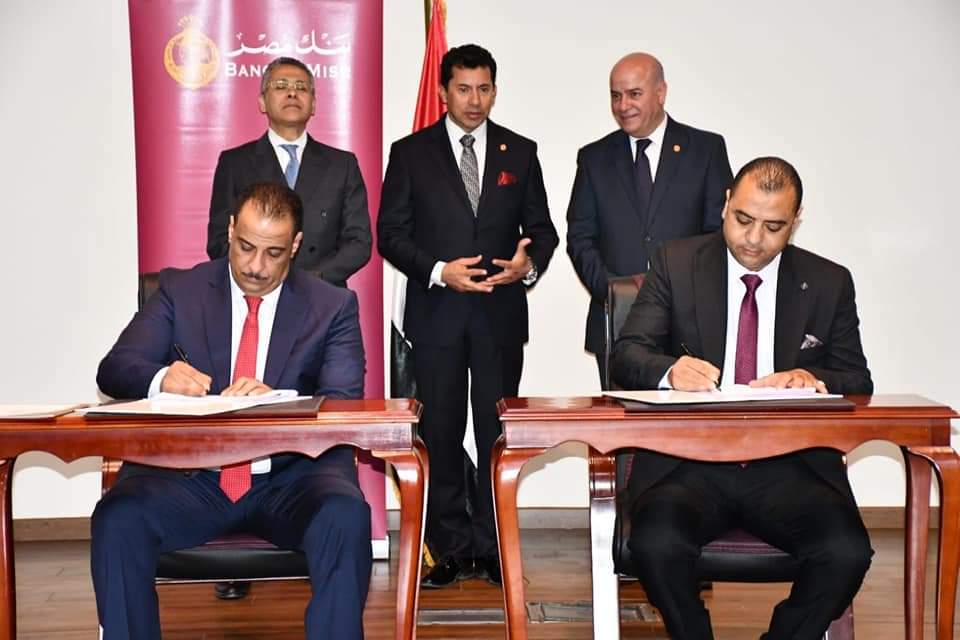 وزير الشباب والرياضة يشهد توقيع عقود 7فروع لبنك مصر بمراكز الشباب