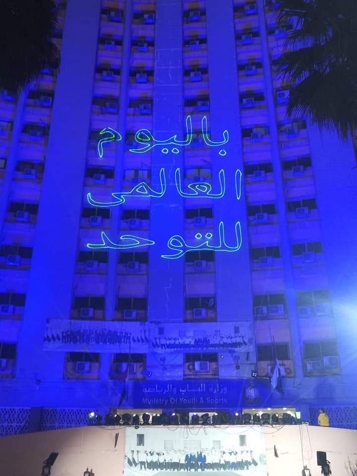 كانت وزارة الشباب والرياضة قد أضاءت أمس الديوان العام لها بمنطقة المهندسين، المركز الأوليمبي بالمعادى، ونادى النادى بمدينة السادس من أكتوبر باللون الأزرق؛ احتفالاً باليوم العالمي للتوحد حيث يحتفى العالم بإحياء اليوم العالمي للتوعية بمرض التوحد عبر إضاءة اللون الأزرق في كل مكان، وذلك يوم ٢ إبريل من كل عام وهو اليوم الذي أطلقته الجمعية العامة للأمم المتحدة بهدف نشر التوعية بالمرض والتحذير منه.
