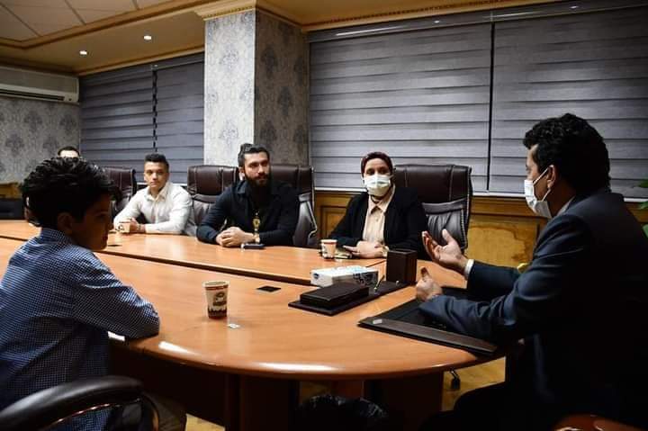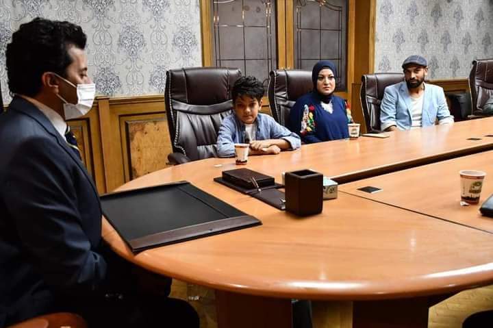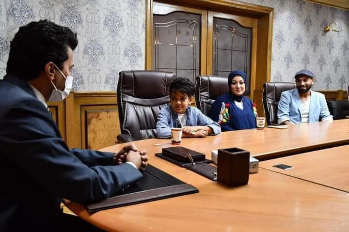 التقي الدكتور أشرف صبحي وزير الشباب والرياضة، الطفل الموهبة محمد أسامة صاحب الموهبة الغنائية والذى ظهر عبر فيديو قصير عبر خلاله عن موهبته المتميزة فى الغناء ولاقت قبولا وصدى كبير على مختلف وسائل التواصل الاجتماعي بين مختلف اوساط الشباب ، بحضور كريس المصري ووالدة الطفل محمد أسامة.