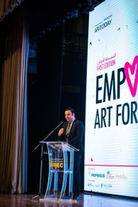 معاونه لشئون التنمية الثقافية والمجتمعية مصطفي عز العرب لحضور حفل إفتتاح معرض “Empower her”