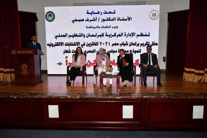 قام الدكتور “أشرف صبحي” وزير الشباب ،اليوم الخميس، بتكريم أعضاء برلمان شباب مصر 2021 ، الفائزين في الانتخابات الالكترونية لنموذج محاكاة مجلس النواب المصري تحت شعار “كن قيادياً.. كن مؤثراً”.