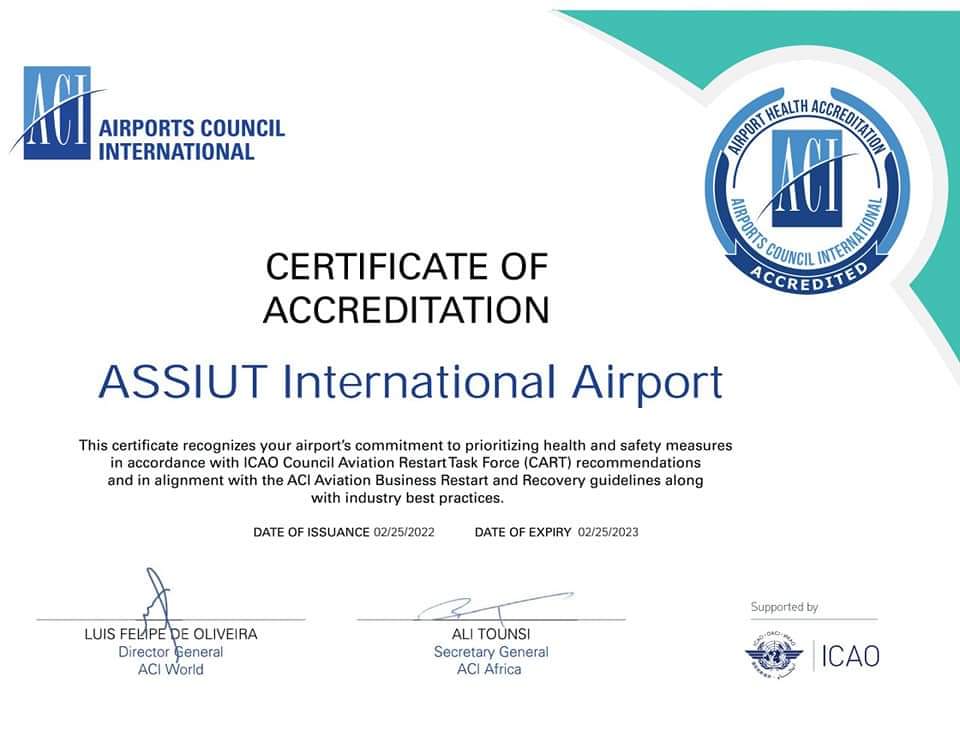 نجح كل من مطارى ” أسيوط وسوهاج ” الدوليين فى تجديد شهادة ” الاعتماد الصحى الدولى للسفر الآمن ” التى يمنحها المجلس الدولى للمطارات ( ACI ) للعام الثانى على التوالى ليصل عدد المطارات المصرية التى تم تجديد شهادة الاعتماد الصحى لها حتى الآن إلى (8) مطارات وذلك ضمن البرنامج الدولى للاعتماد الصحى للمطارات (AHA).