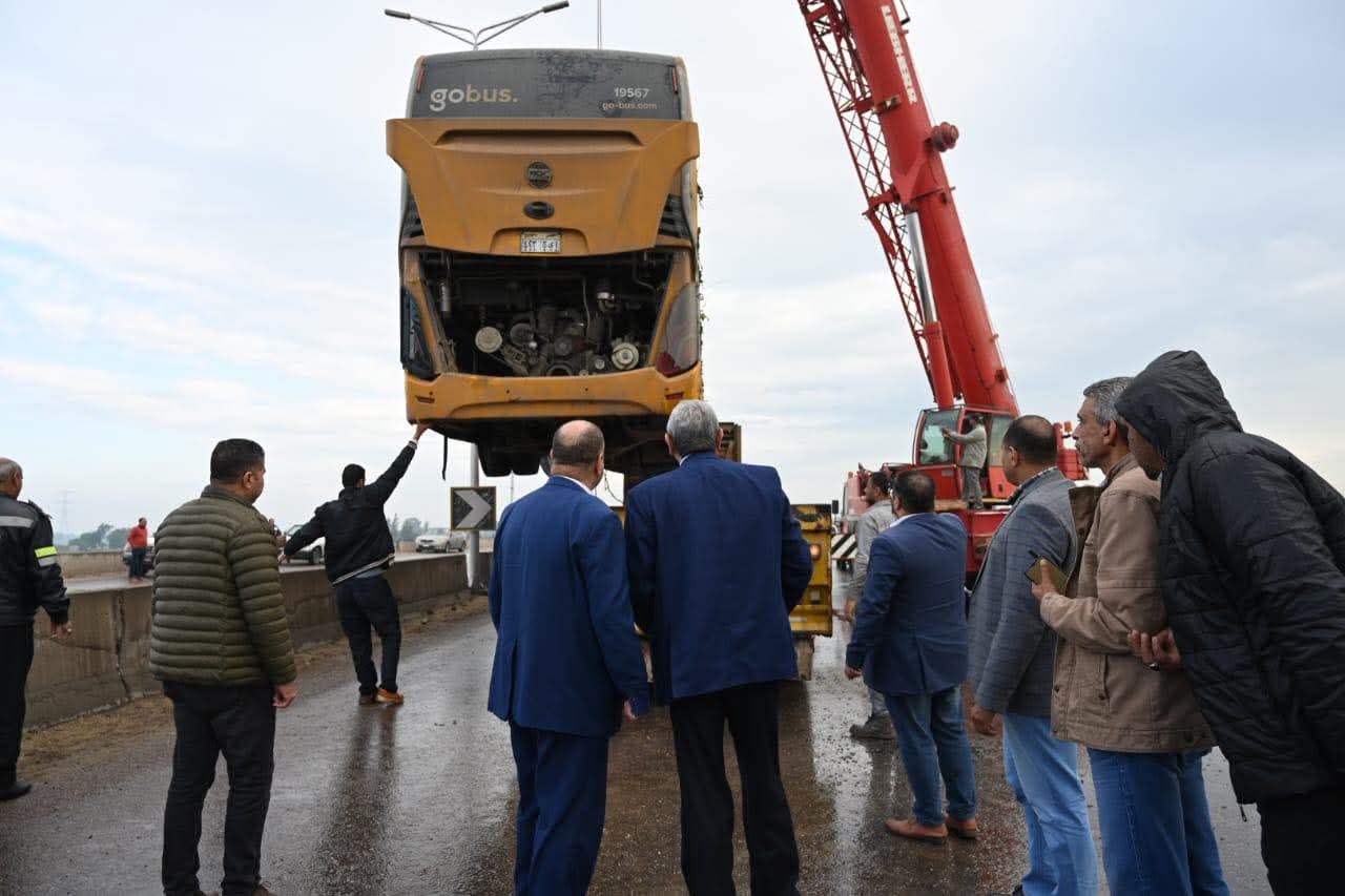 وتابع المحافظ بنفسه أعمال رفع الأتوبيس ونقله لتأمين الطريق وإعادة الحركة المرورية تدريجياً، موجهاً جميع الجهات بالعمل المتواصل حتى إزالة أي آثار للحادث.