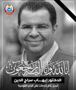كان الدكتور إيهاب سراج الدين قد شغل مؤخرا مدير بنوك الدم القومية وعرف عنة الكفاءة وشارك في تجهيز بنوك الدم القومية ومشروع فصل بلازما المتعافين من كورونا.