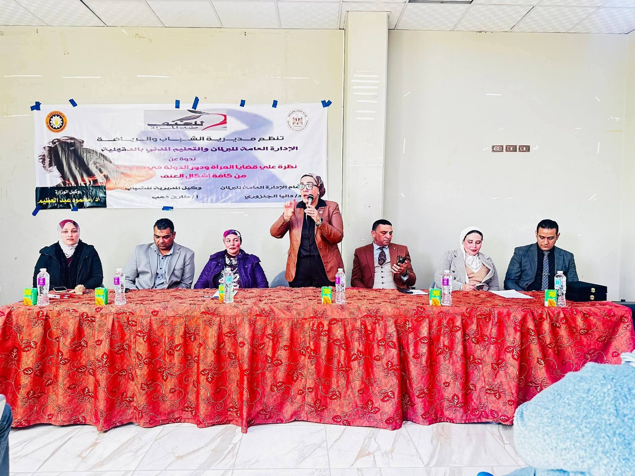 وفي كلمته، أكد الدكتور محمود عبد العظيم أن الدولة المصرية تولي اهتمامًا بالغا بقضايا المرأة، مشيرًا إلى عدد من الظواهر السلبية التي تتطلب المواجهة، مثل التنمر، والضرب، والتحرش، والزواج المبكر، موضحا آليات التعامل مع هذه القضايا وسبل الإبلاغ عنها بالتنسيق مع مديرية أمن الدقهلية عبر وحدات جرائم العنف ضد المرأة وحقوق الإنسان والإعلام.