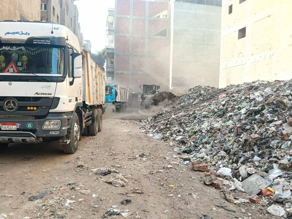 من تراكمات مخلفات الهدم والبناء، وفي إطار تفعيل أحكام القانون رقم 202 لسنه 2020 بشأن تنظيم إدارة المخلفات.