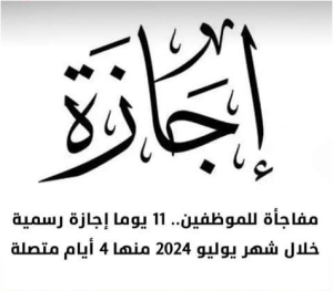 إجازة رسمية طويلة في شهر يوليو 2024 منها 4 أيام متصلة